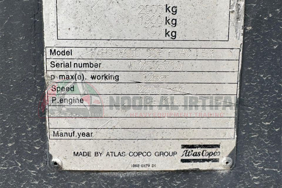 The Atlas Copco XAHS 186DD is a high-performance, heavy-duty portable diesel air compressor, designed for industrial, construction, and mining applications. Delivering 375 CFM at 12 BAR, this compressor provides powerful, stable compressed air for demanding tools and continuous operations.