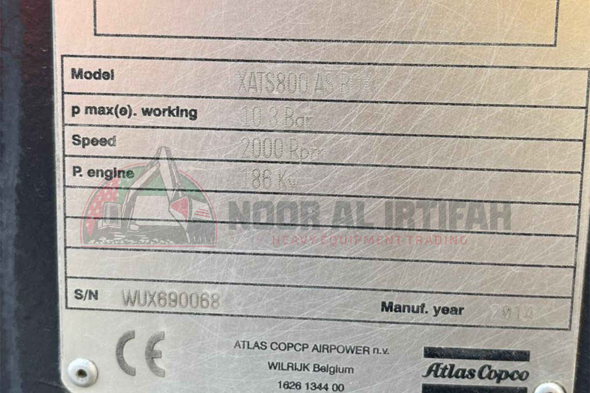The Atlas Copco XATS 800 is a high-performance portable air compressor designed for construction, mining, and industrial applications. Renowned for reliability, efficiency, and low operating costs, this compressor delivers stable, high-capacity compressed air for demanding job sites.